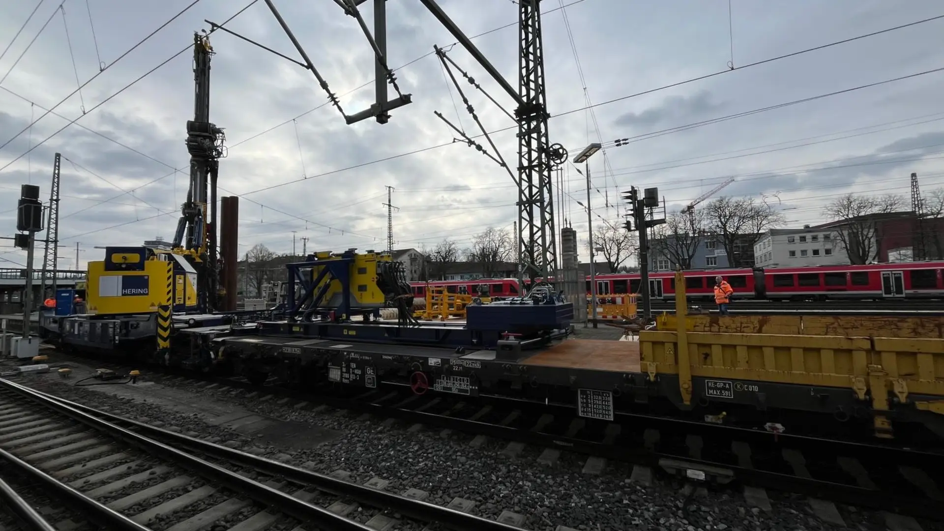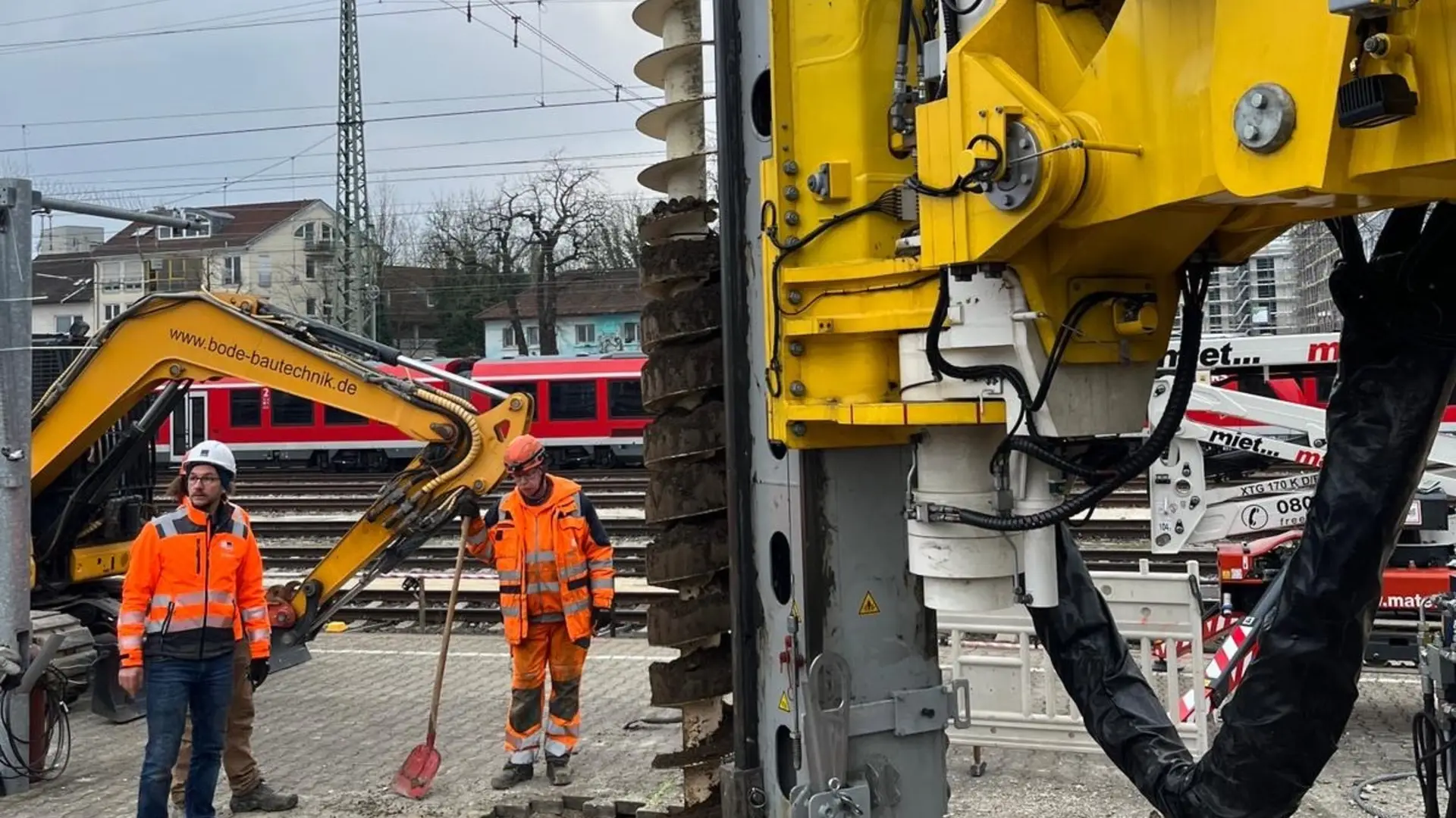 Und Stichwort herkömmliches Gerät: Um ein solches an den Ort der Gründungsarbeiten zu bringen hätten mehrere Schienenstränge abgebaut und Oberleitungen entfernt werden müssen. Dies hätte massive Einschränkungen des Zugverkehrs über Tage hinweg bedeutet, von den zusätzlichen Kosten ganz zu schweigen. Der Gleisgründungszug allerdings konnte bequem und direkt auf den Schienen an Ort und Stelle gefahren werden.