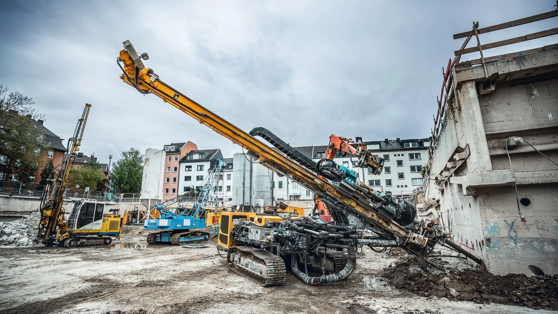 Seit dem Baustart arbeitet das Team von Bauer Spezialtiefbau unter herausfordernden Bedingungen. „Wenn mehrere tonnenschwere Maschinen auf gestützten Tiefgaragendecken arbeiten, ist höchste Präzision gefragt. Hier darf kein Fehler passieren“, erklärt Moritz Hahn. Auf der Baustelle des Projekts LVR-Neubau kommt eine beeindruckende Palette leistungsstarker Maschinen zum Einsatz: von der BAUER BG 24 H, die im Kelly-Bohrverfahren Pfähle mit Durchmessern bis 880 mm herstellt, über die KLEMM Bohrgeräte KR 806 und KR 401, die unter beengten Bedingungen Verpressanker setzen, bis hin zu einer RG 16 T der RTG Rammtechnik GmbH, die für Rüttelarbeiten eingesetzt wird.