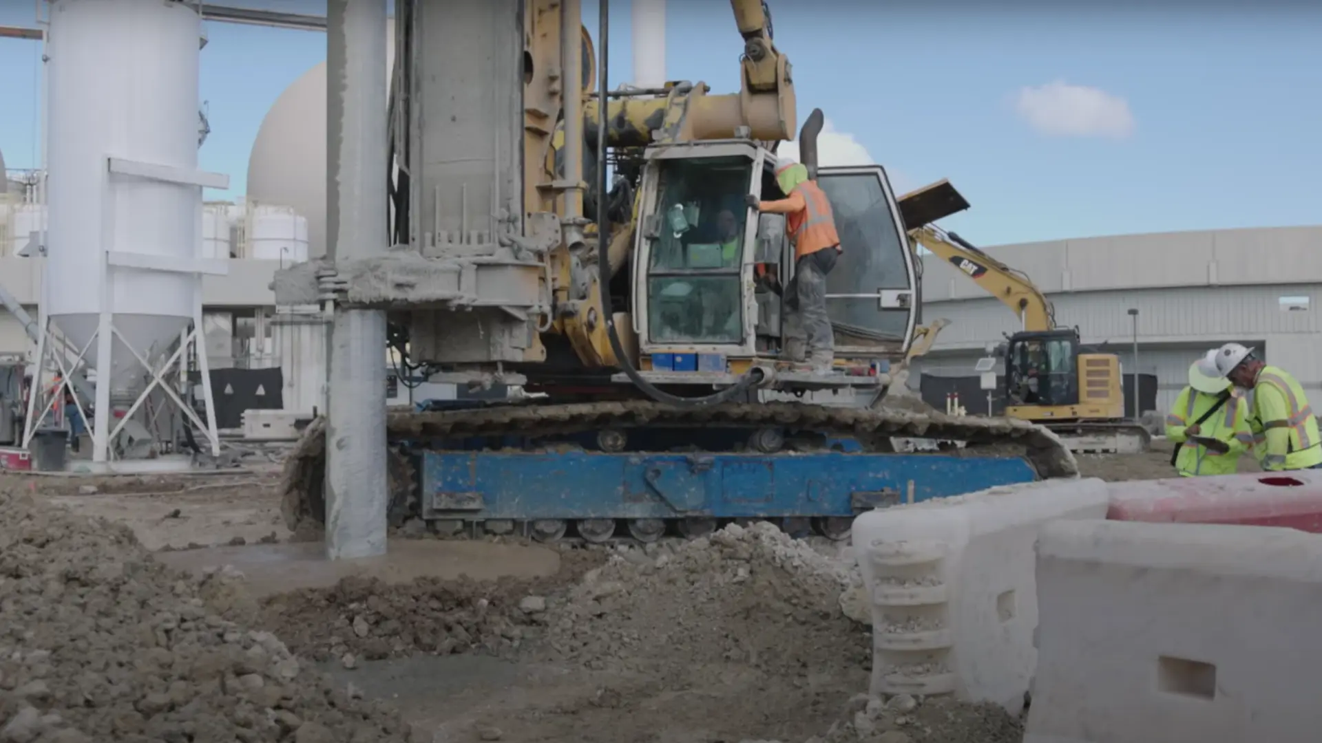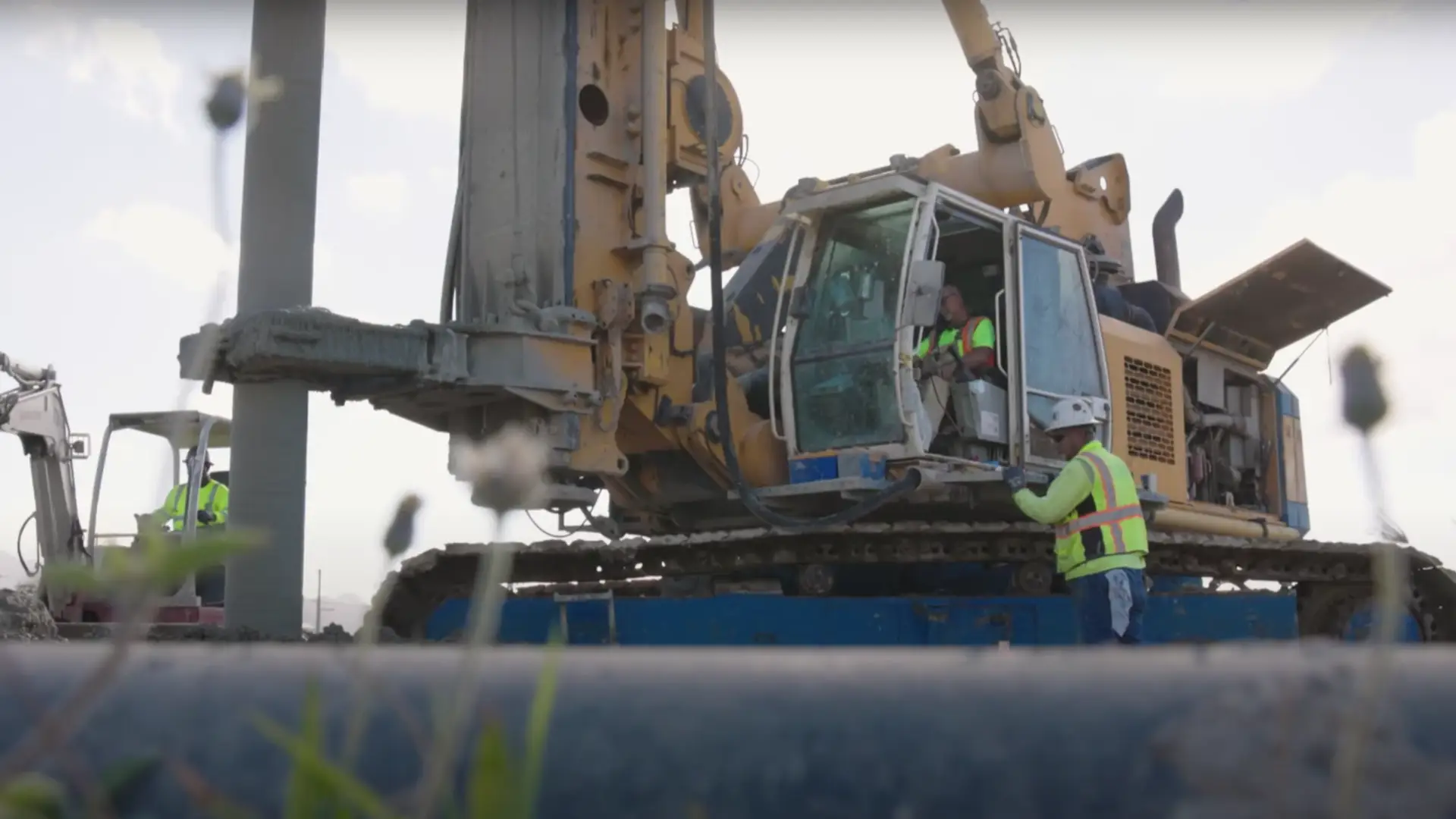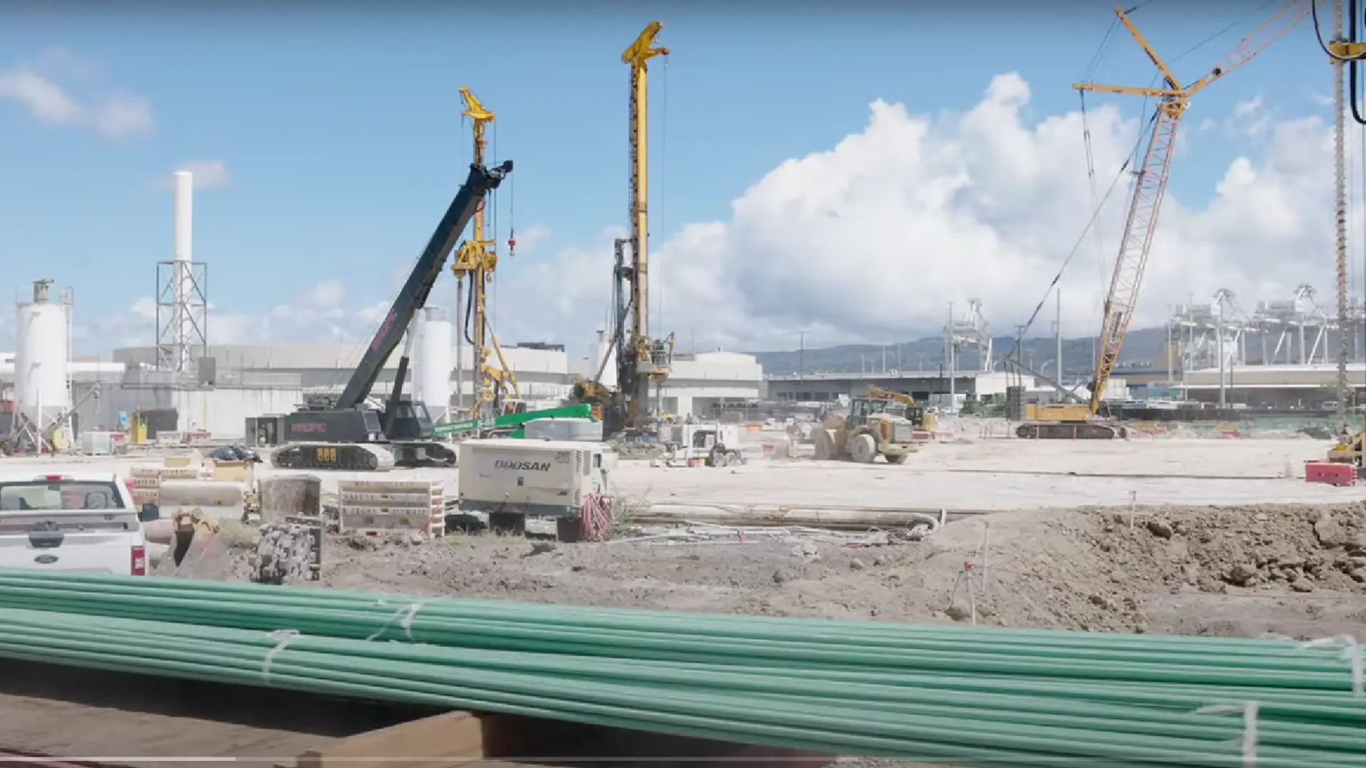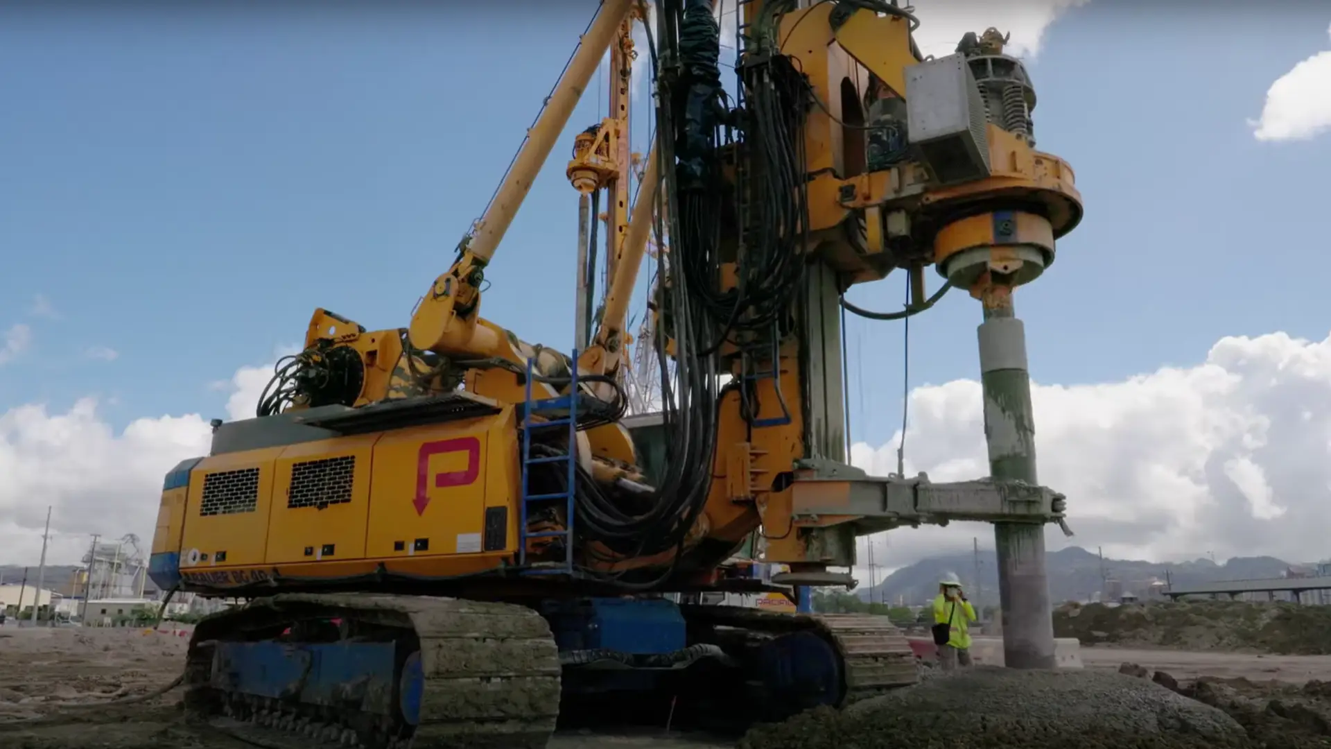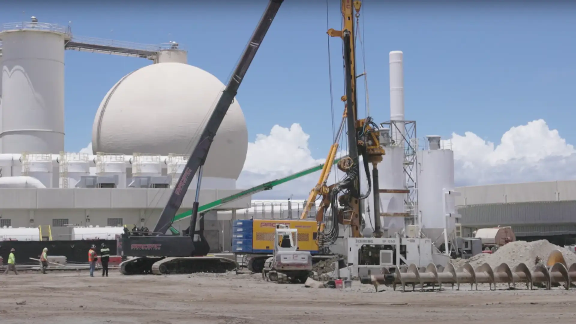 The specialist foundation engineering company Pacific Foundation used its two BAUER BGs, a BG 33 and a BG 40, to carry out large-scale ground improvement using the Single Column Mixing (SCM) method and to inject a special high-quality cement mixture into the ground. First, the ground was pre-drilled with auger drills, something that is not usual in the SCM process, but is due to the hard and difficult ground conditions. Only then could the soil be mixed with mixing paddles and simultaneously injected with the respective binding agent.